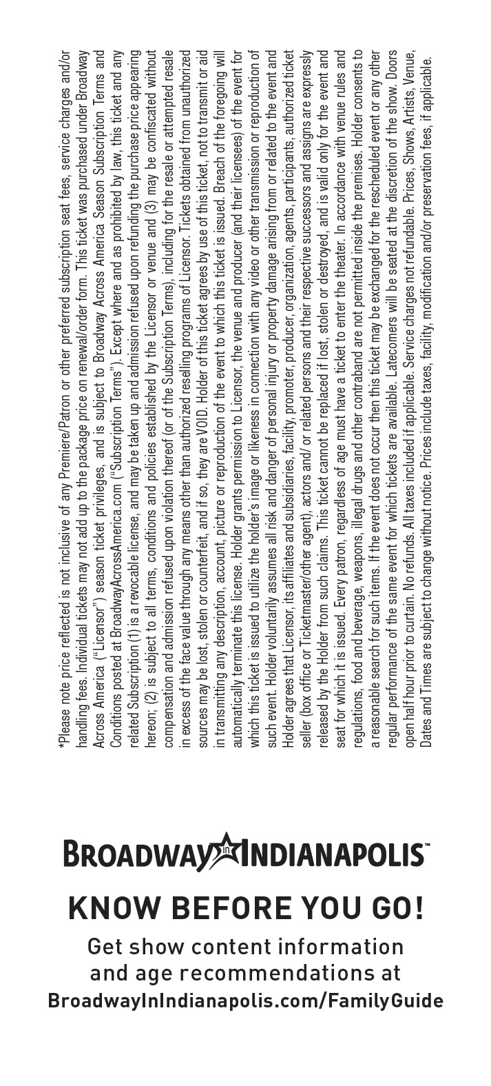 Broadway in Indianapolis saddle sticked ticket BookÂ